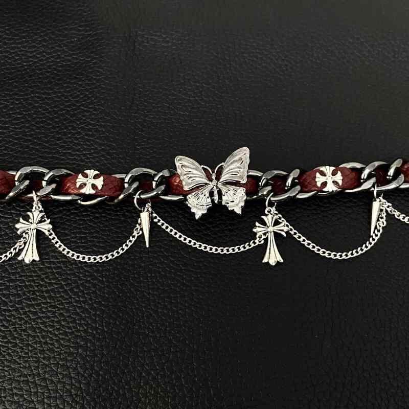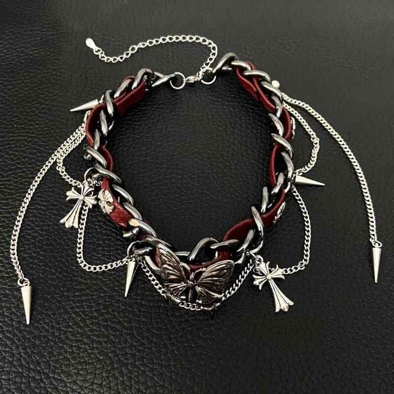 チョーカー レディース 欧米風 パンク ストリート ヒップホップ 大ぶり ネックレス ダーク系 個性的 スタッズ クロス フリンジ レザー 合金製 電気メッキ加工 秋冬