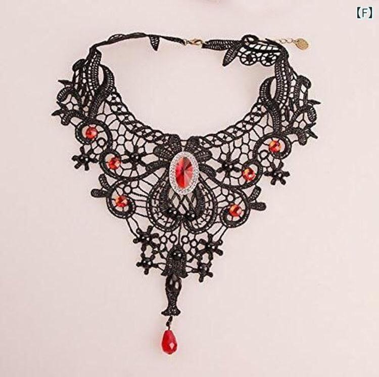 チョーカー レディース ゴシック パンク レース ネックレス ブラック 女性用 シンプル 鎖骨 アクセサリー レトロ エレガント ファッション小物 フラワーモチーフ ホワイト レッド