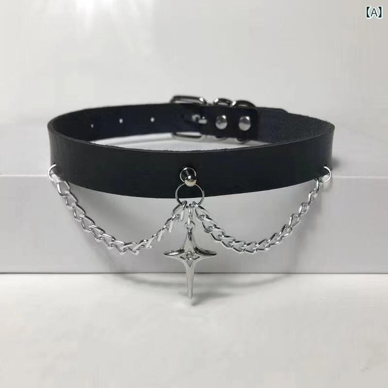 チョーカー メンズ レディース ユニセックス ダーク パンク ゴシック ロック 四芒星 ペンダント レザーネックレス 黒 革製 鎖骨ネックレス 電気メッキ加工 個性派 クール ファッション ストリート