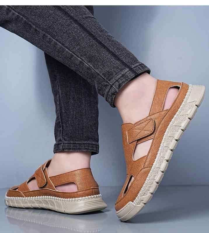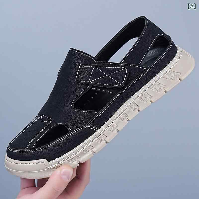 サンダル メンズ 男性用 春夏 通気性 穴あき メッシュ クローズドトゥ つま先保護 ソフトソール 防滑 合成皮革 EVAソール スポーツ ドライビング ビーチ 水陸両用 カジュアル