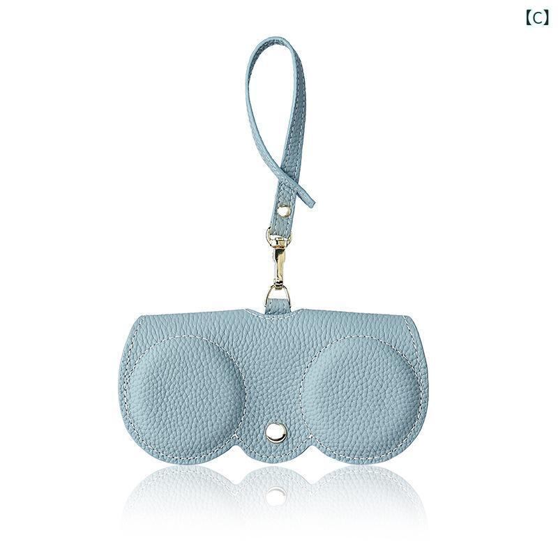 眼鏡ケース サングラスケース 本革 牛革 レザー ライチ柄 リッチレザー調 携帯用 ポータブル かわいい おしゃれ ブラック ブラウン ブルー ピンク カーキ