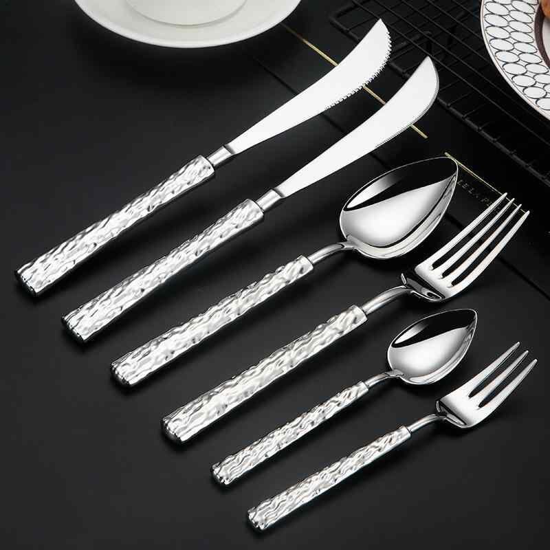 カトラリー ステンレス製 レトロ ストーン柄 洋食器 ステーキナイフ フォーク スプーン セット 携帯用 耐久性 ホテル レストラン 業務用