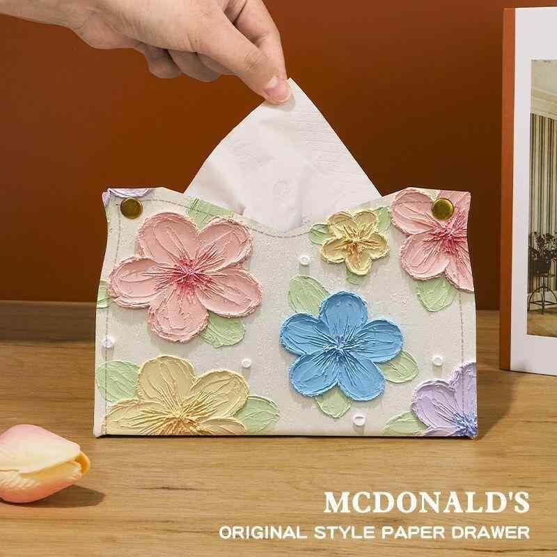 ティッシュケース 上質 高級感 油絵風 カラフル 花柄 車載 リビング 卓上 家庭用 飲食店 洗面所 収納 防水 多機能 PUレザー おしゃれ インテリア