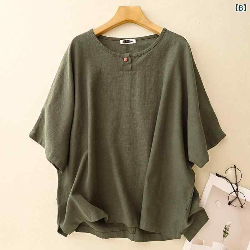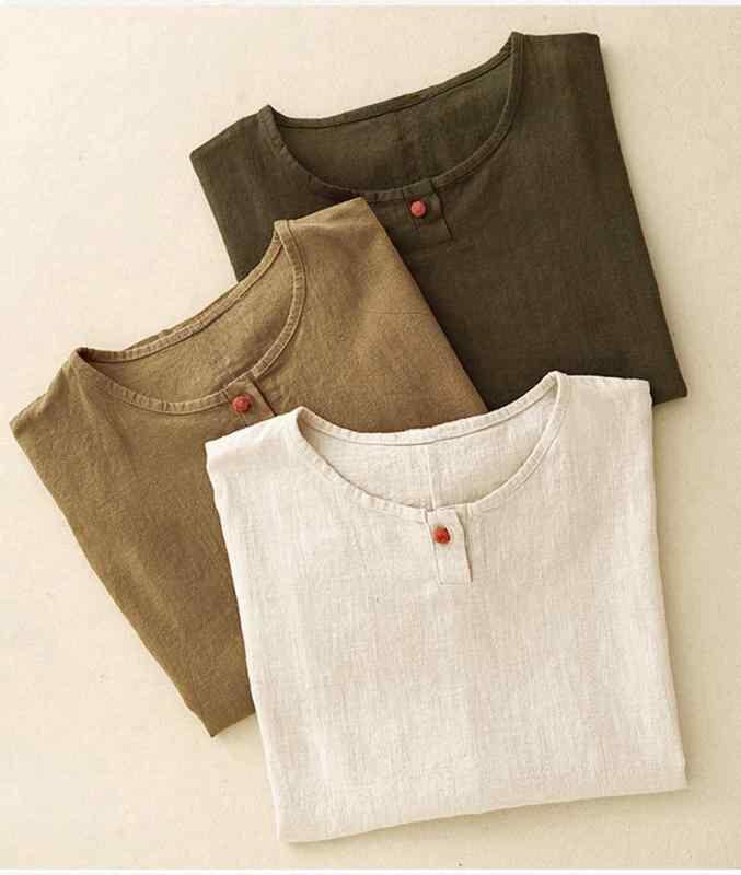 Tシャツ レディース 綿麻 新チャイナ風 レトロ 禅風 プルオーバー 半袖 ゆったり 無地 チャイナボタン ラウンドネック 春夏 カジュアル 普段使い リラックスウェア アプリコット ベージュ カーキ マスタード