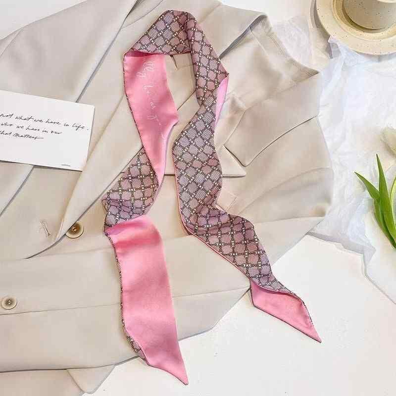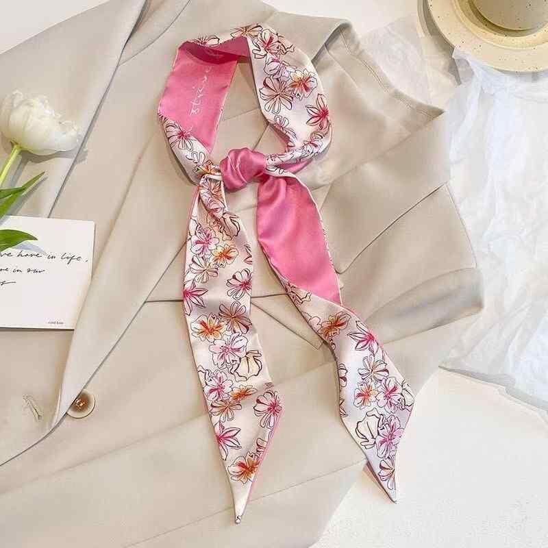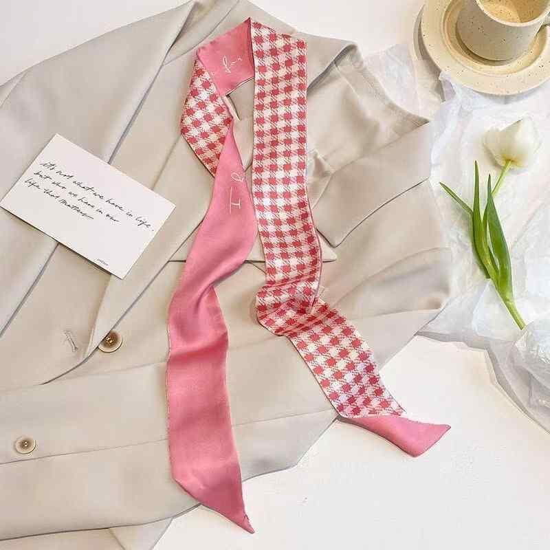 リボン マルチ ベリーピンク チェック柄 幾何学模様 花柄 春夏 ポリエステル 高級感 ヘアアレンジ スカーフ バッグチャーム 万能 細長 ストリーマー フェミニン 日韓風