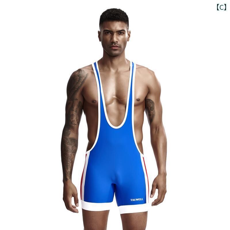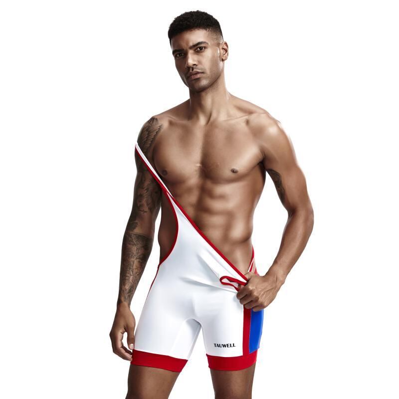 シングレット フィットネスウェア メンズ 男性用 レスリングスーツ レオタード オールインワン タンクトップ ショートパンツ一体型 カジュアル ジム トレーニング 吸湿速乾 伸縮性 ポリエステル 無地 ホワイト ブラック ブルー系