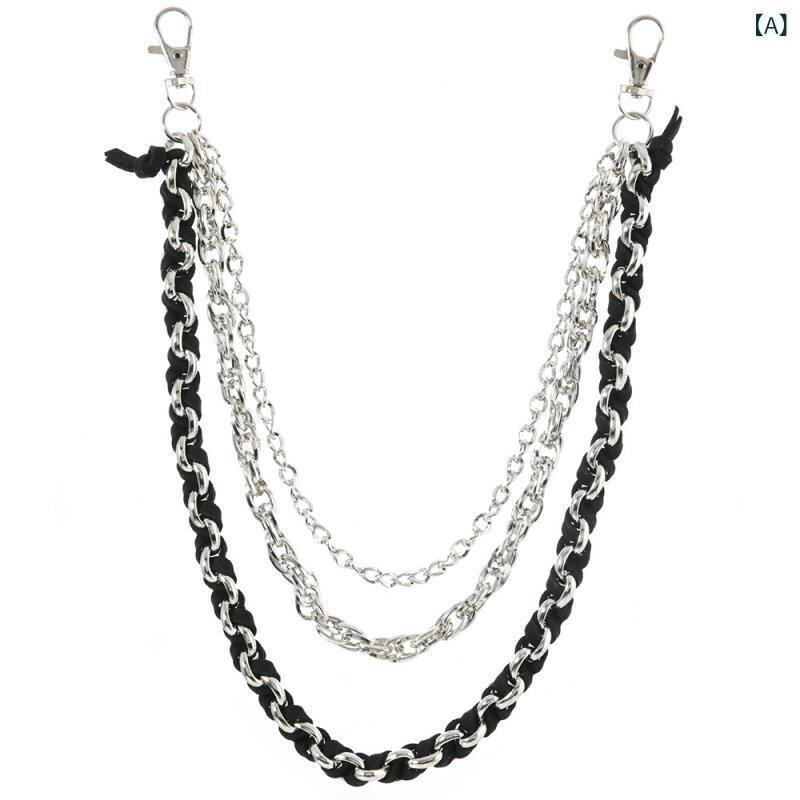 パンツチェーン ウォレットチェーン メンズ レディース ユニセックス パンク ロック ヒップホップ ストリート系 デニム 多層 編み込み メタル アクセサリー ファッション小物