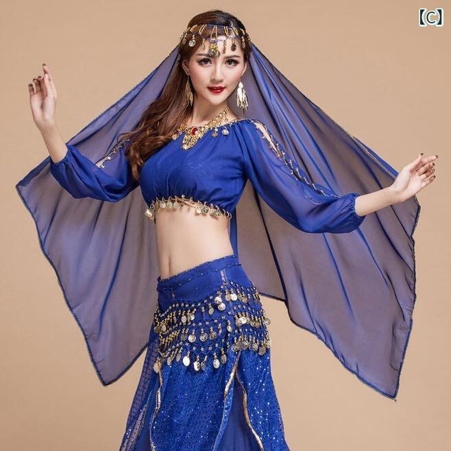 ベール ダンス衣装 ベリーダンス インド舞踊 新疆舞踊 発表会 舞台 イベント 練習着 パフォーマンス エキゾチック 民族風 ヘッドドレス シフォンベール ポリエステル 華やか