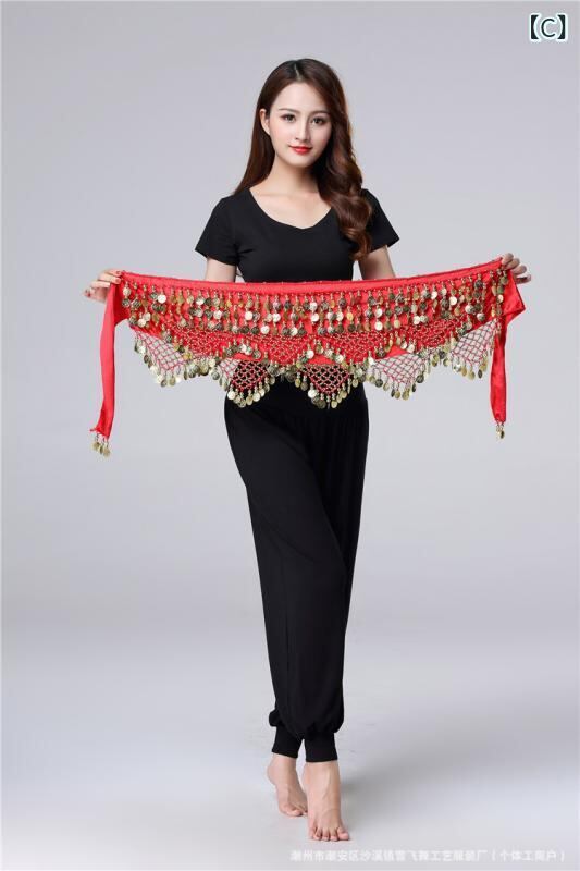 ベリーダンス レディース ヒップスカーフ コインベルト 初心者向け 発表会 衣装 ベロア生地 民族調 鈴付き 重量感のある音色 オリエンタルスタイル 手編み装飾 秋冬 フリーサイズ