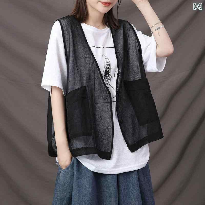 ベスト レディース リネンライク 開襟 ノースリーブ ゆったり 大きいサイズ 前開き 羽織り 体型カバー コットン ジレ 夏物 カジュアル きれいめ 大人 おしゃれ 普段使い 通勤 オフィス 軽量 通気性 ブラック ホワイト グレー
