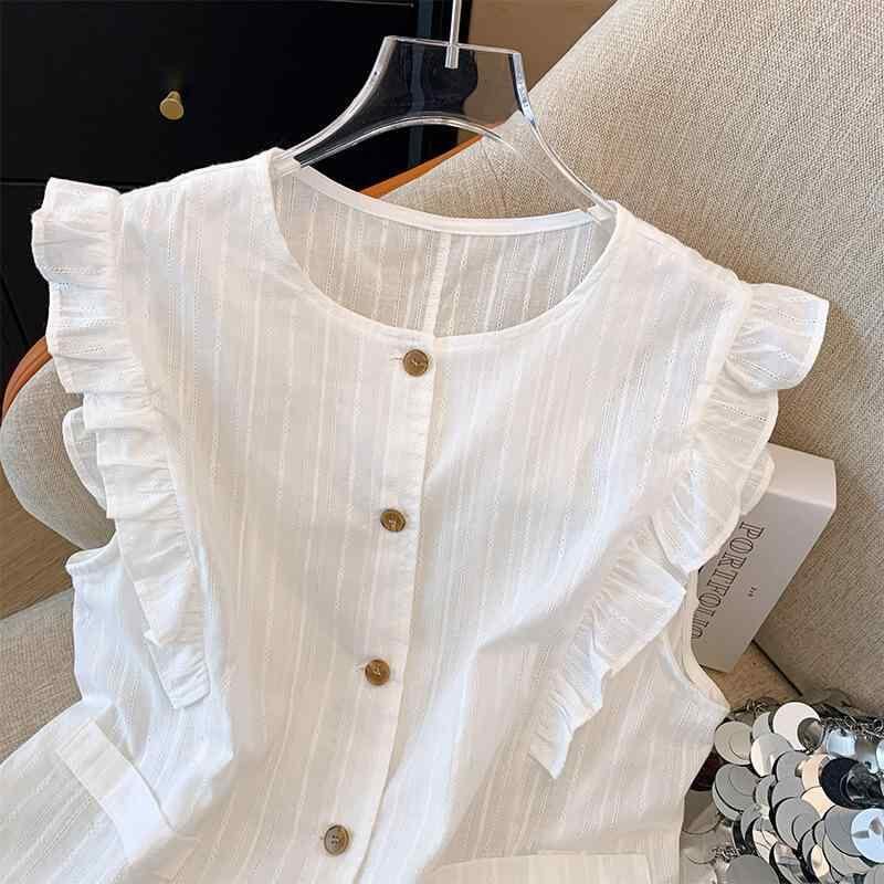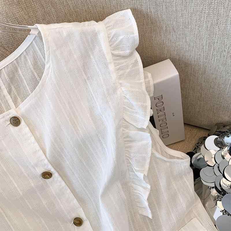 ベスト レディース ノースリーブ フリル襟 切り替え ゆったりシルエット おしゃれ 万能 着回し 通勤 オフィス カジュアル 韓国デザイン エレガント ポリエステル ホワイト ジレ トップス