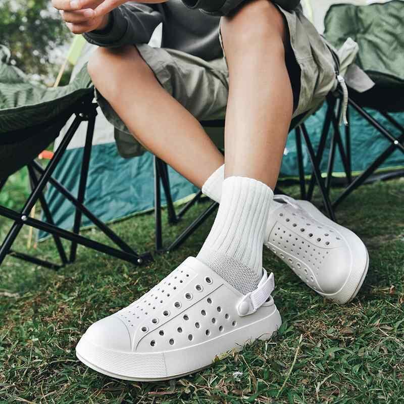 サンダル 男女兼用 クロッグサンダル 厚底 EVA素材 メッシュ パンチング 通気性 軽量 クッション性 防水 アウトドア ビーチ 水陸両用 スリッポン つま先保護 カジュアル 春夏秋
