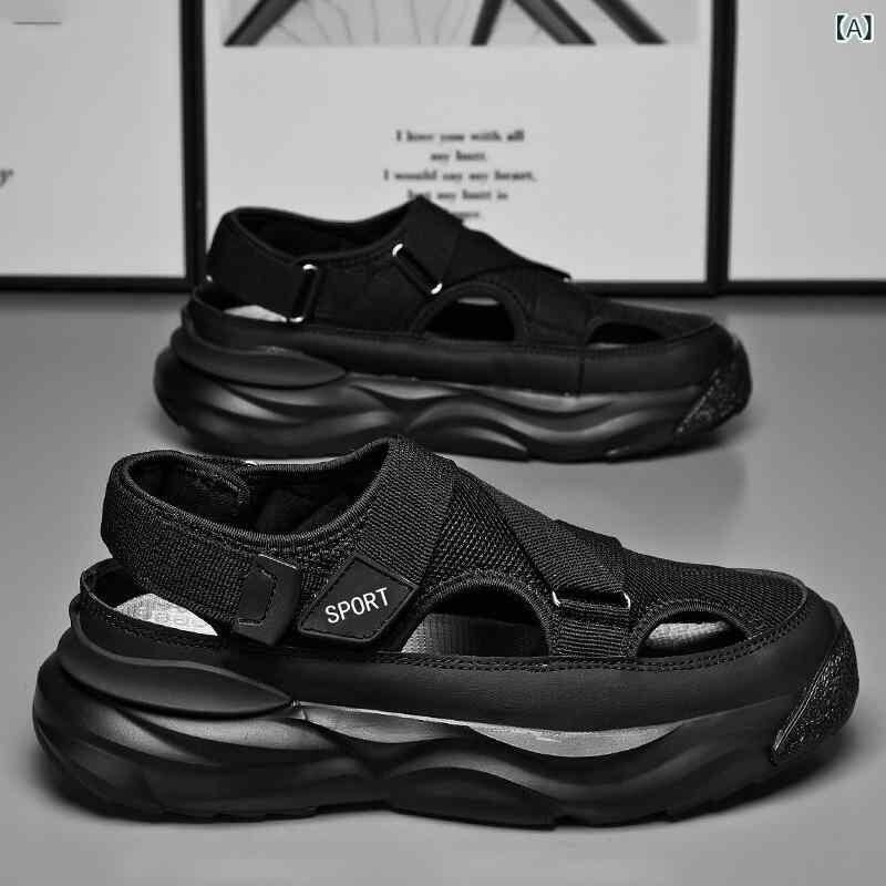 サンダル メンズ 若者向け カジュアル 万能 普段使い レジャー おしゃれ マジックテープ 通気性 涼感 滑り止め オープンデザイン トゥガード 合成皮革 メッシュ素材 PVCソール ブラック グレー