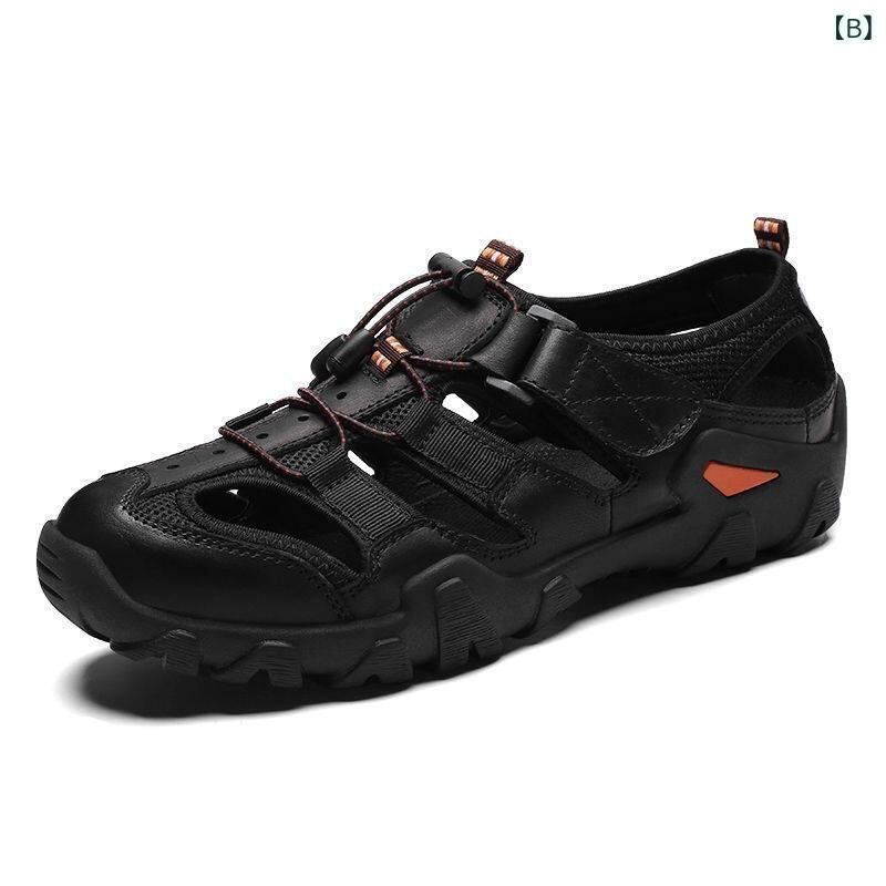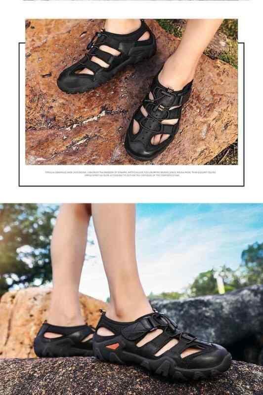 サンダル メンズ 夏用 カジュアル スリッポン メッシュ 通気性 つま先保護 ソフトソール クッション性 ビーチ スポーツ 運動靴 ランニングシューズ PUレザー 万能 普段使い ブラウン ブラック