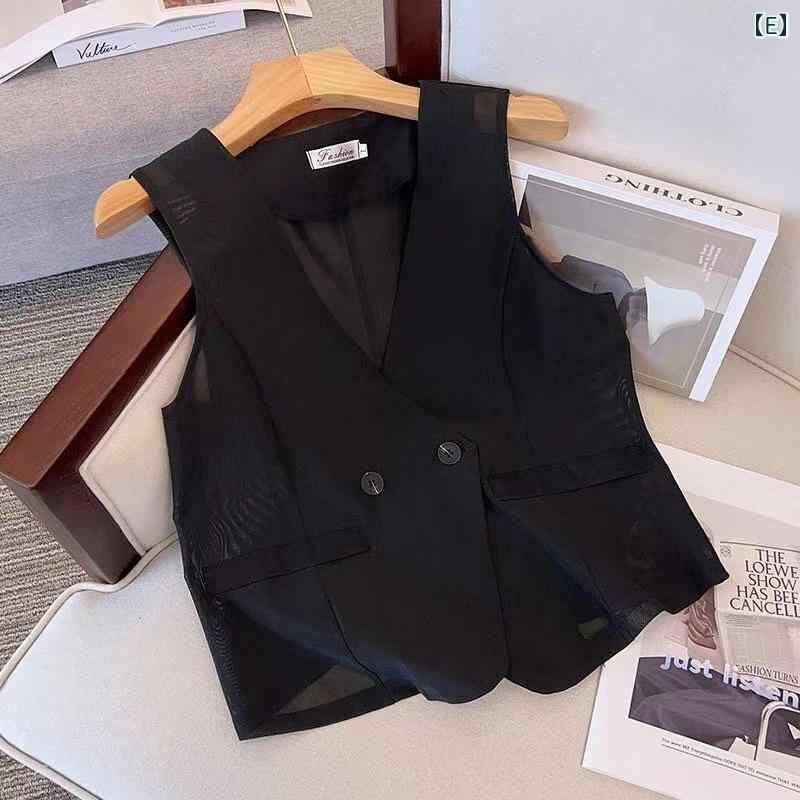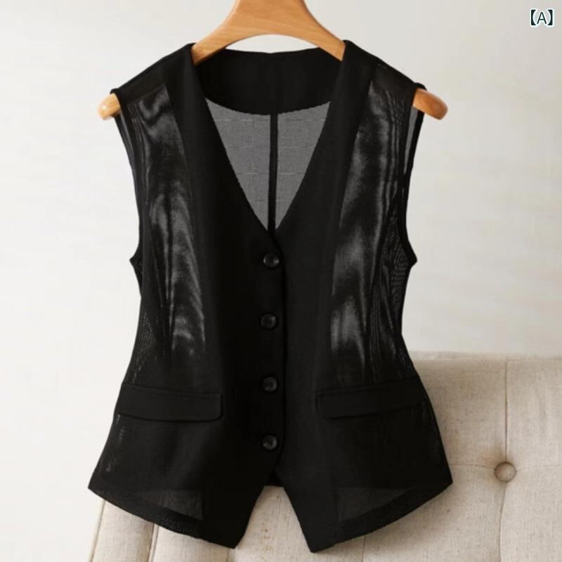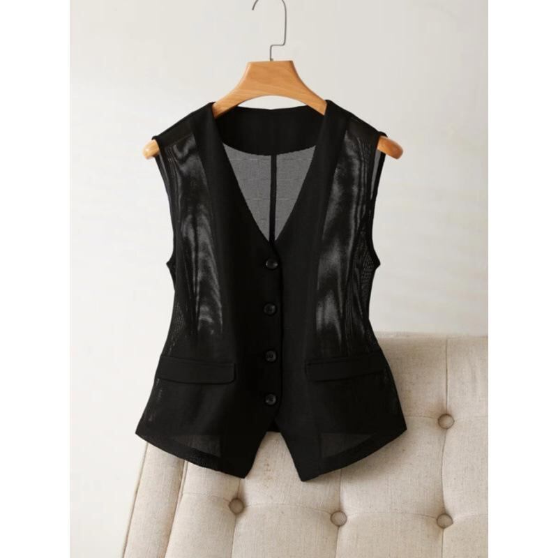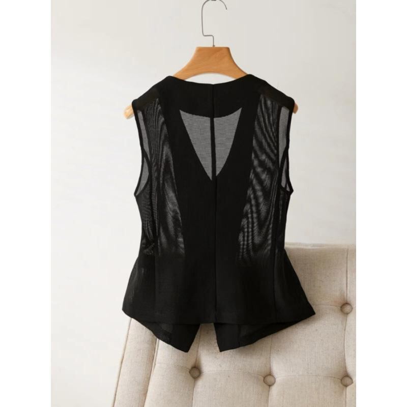ベスト ジレ レディース ショート丈 ネットメッシュ 通気性 スリムフィット 着痩せ効果 デザイン性 オフィス ビジネス 通勤 綺麗め 羽織り ブラック ホワイト