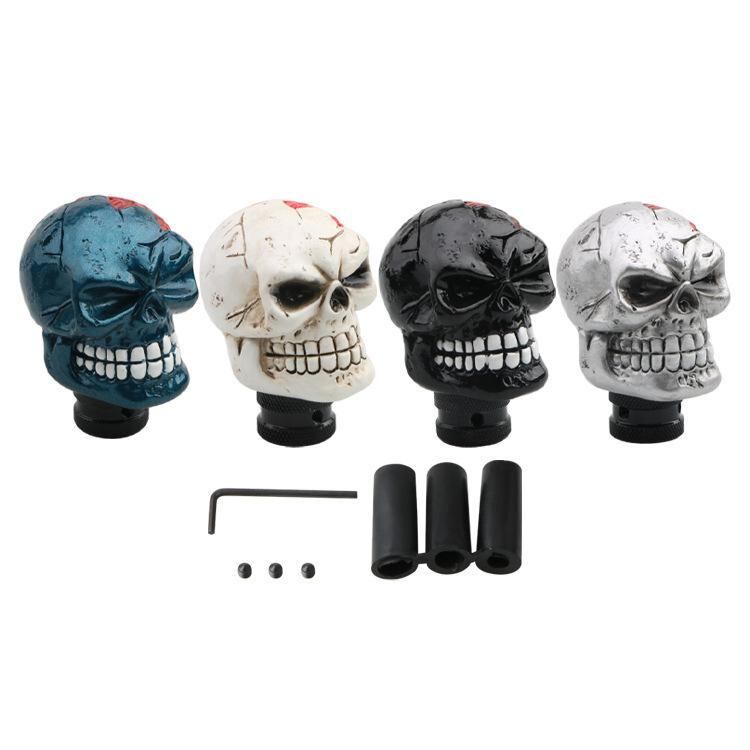車用 シフトノブ スカル ドクロ 汎用 MT車 カスタム ドレスアップ レーシング スポーツタイプ 自動車内装パーツ ブラック ホワイト ブルー シルバー