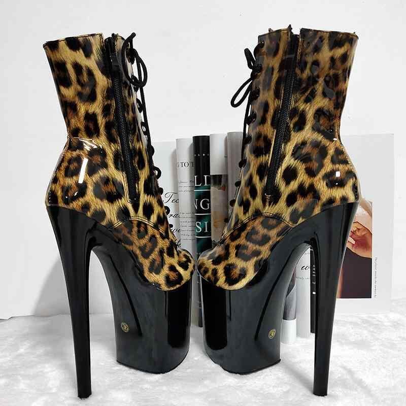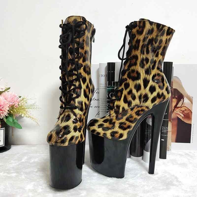 ショートブーツ レディース ヒョウ柄 超高ヒール 20cm 厚底 ラウンドトゥ 編み上げ サイドジップ ナイトクラブ ポールダンス ダンスシューズ 合成皮革 ブラック ラバーソール