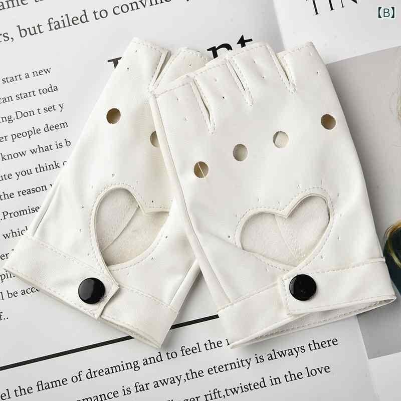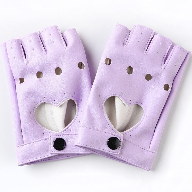グローブ レディース 女性用 ハーフフィンガー 指なし ポールダンス ダンス ヒップホップ クラブ ステージ パフォーマンス 衣装 フェイクレザー 合成皮革 ハート ヒョウ柄 ブラック
