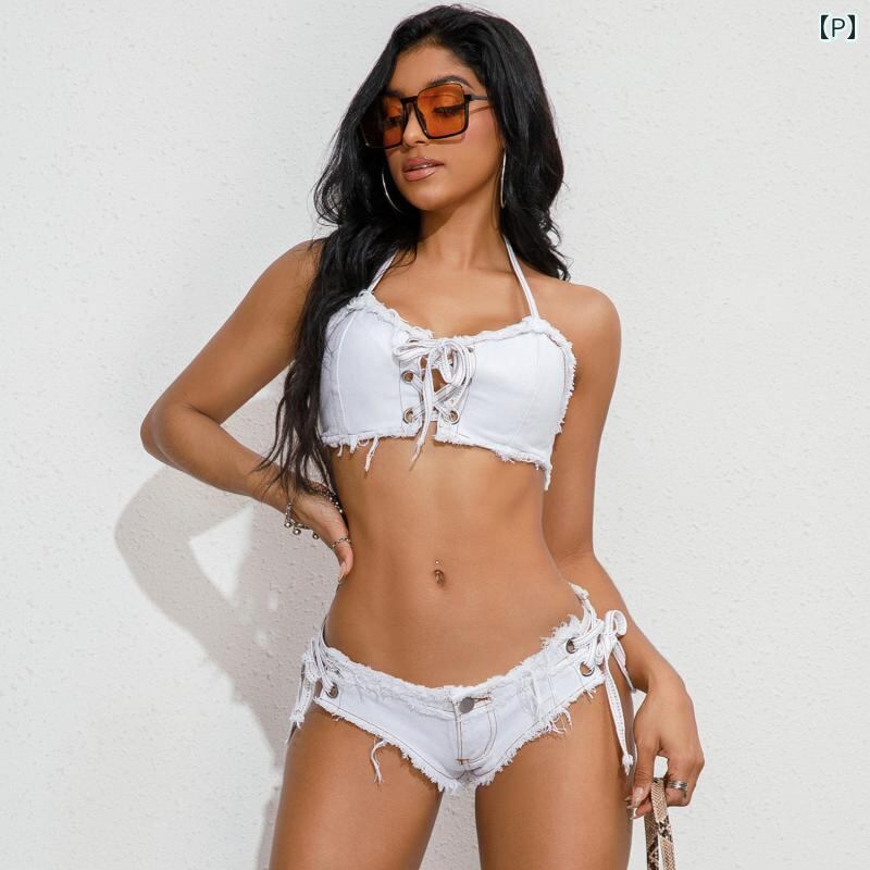 ホットパンツ ステージ衣装 レディース セクシー デニム ポールダンス クラブウェア ダンスイベント パフォーマンス トップス ショートパンツ 綿混 セットアップ