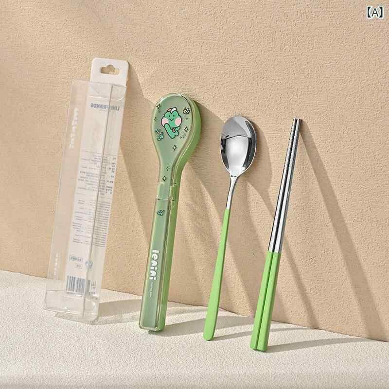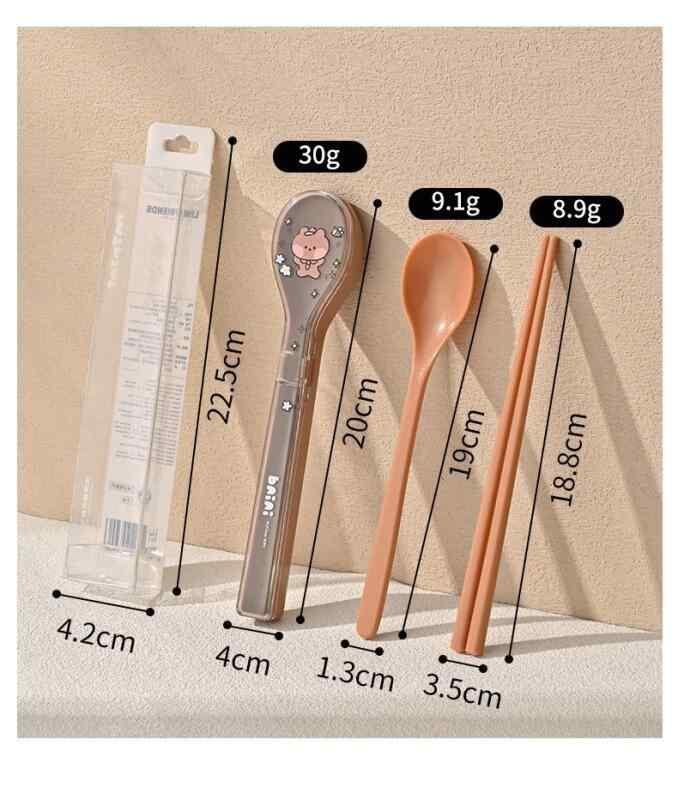 カトラリーセット 小学生用 ブラウンベア かわいい キャラクター 304ステンレス製 箸 スプーン 携帯用 収納ケース付き お弁当 ランチ 通学 ピクニック アウトドア マイ箸 衛生的