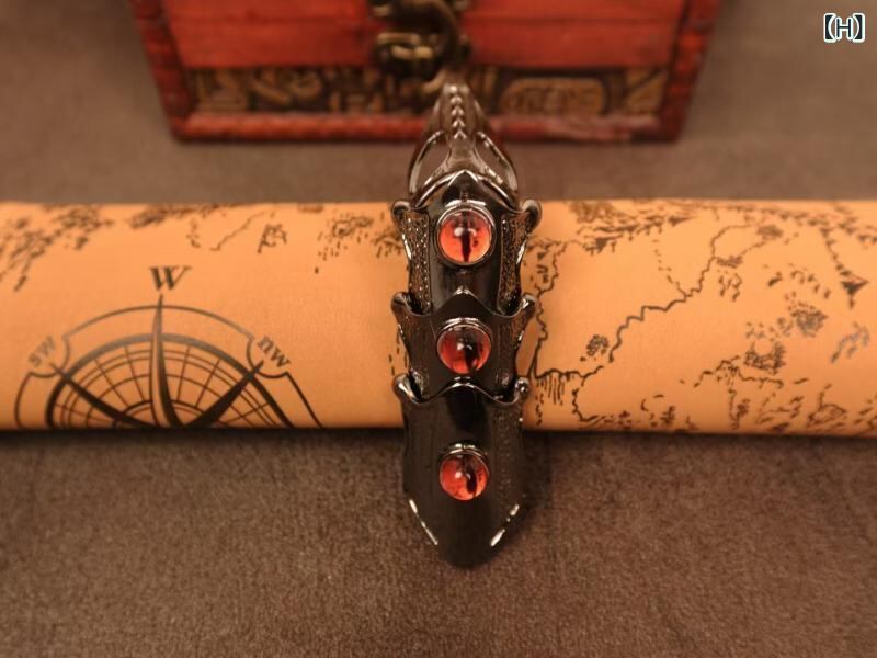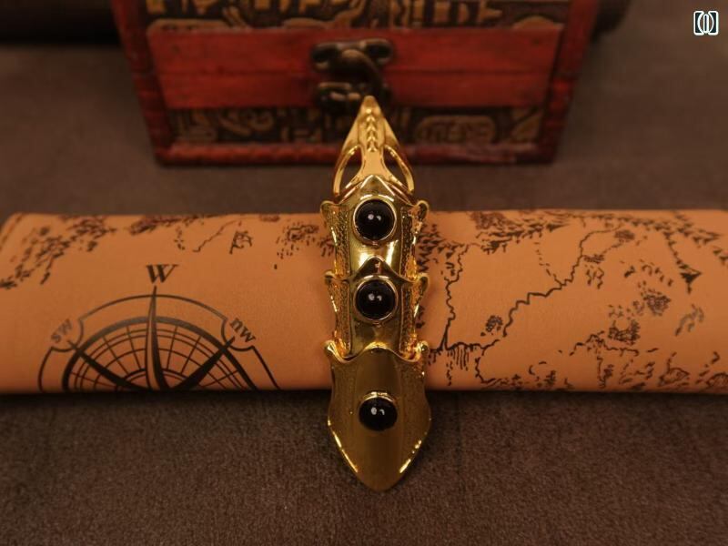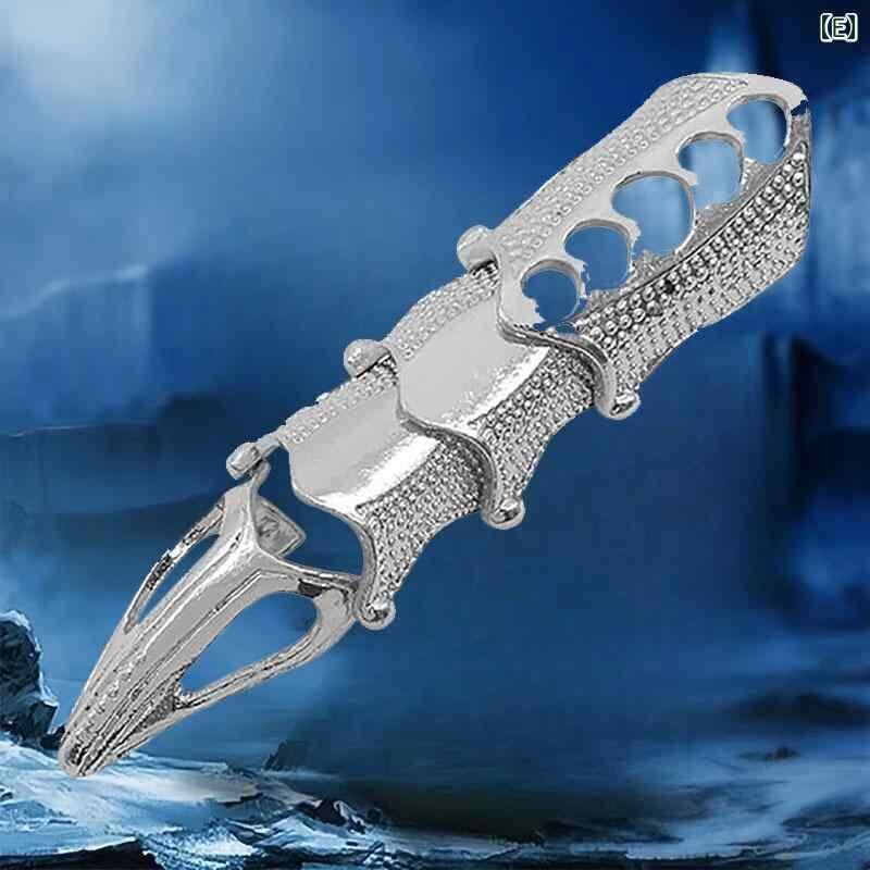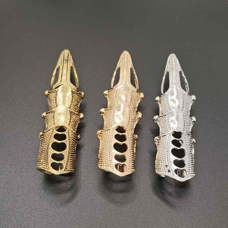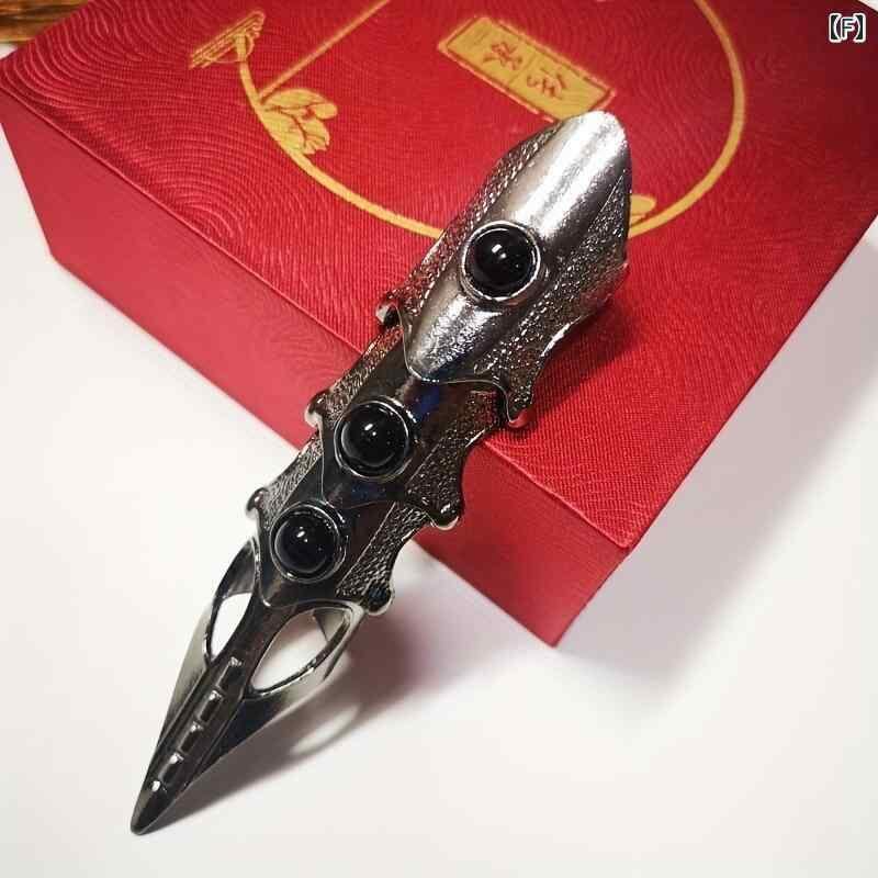 リングブレスレット 指輪 男女兼用 パンク ロック スカルデザイン ロング 関節リング 4連 幾何学模様 個性的 合金製 電気メッキ加工 レトロ クール アンティークシルバー ガンメタルブラック