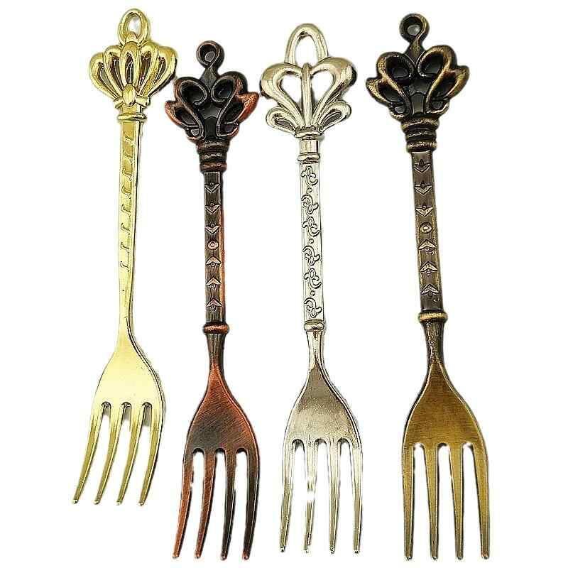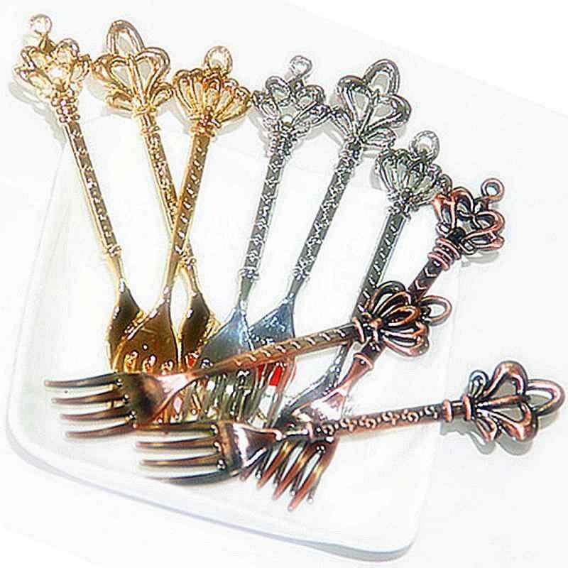 フルーツフォーク 王冠デザイン ゴールド シルバーカラー 亜鉛合金製 水研磨 光沢仕上げ レトロ調 おしゃれ 4本爪 如意 吉祥結び 大人用