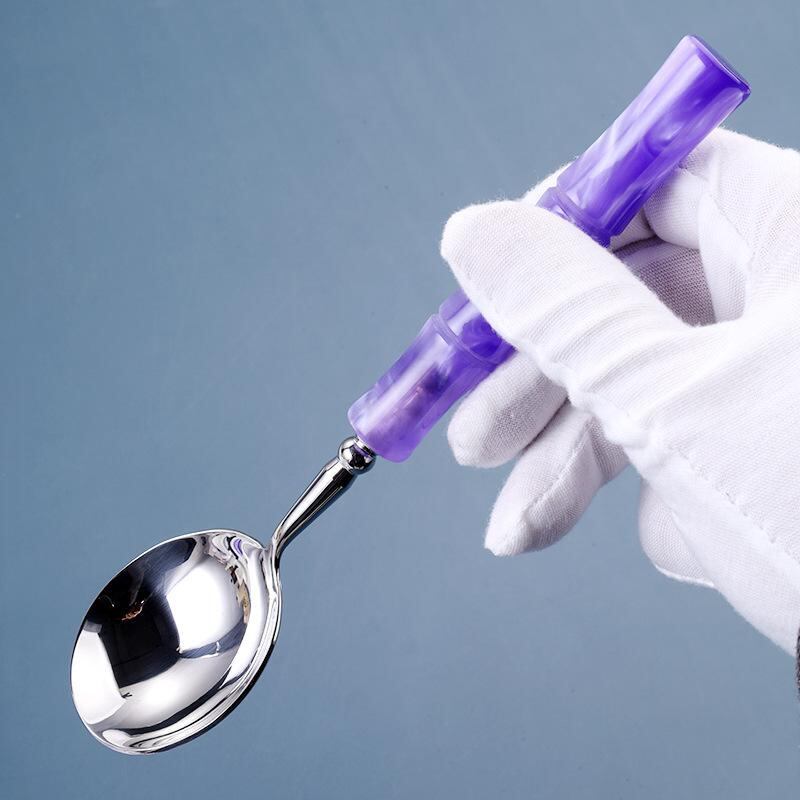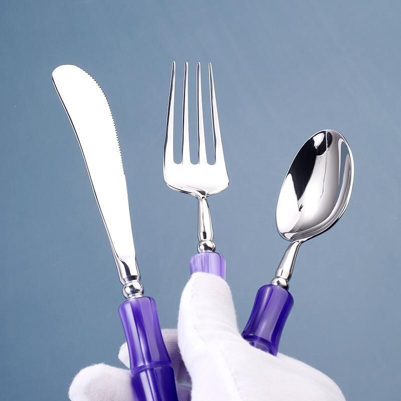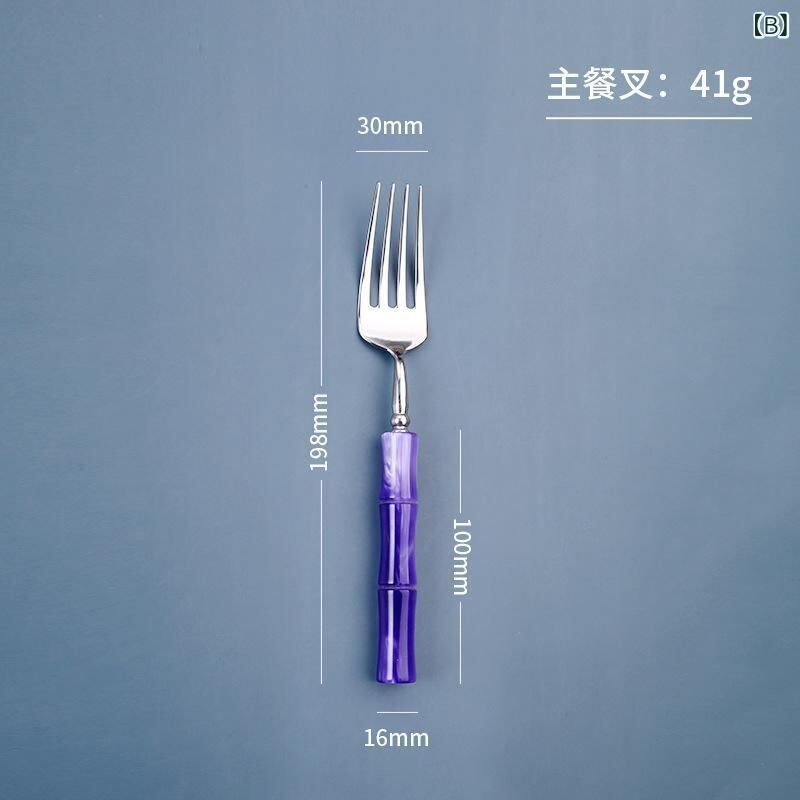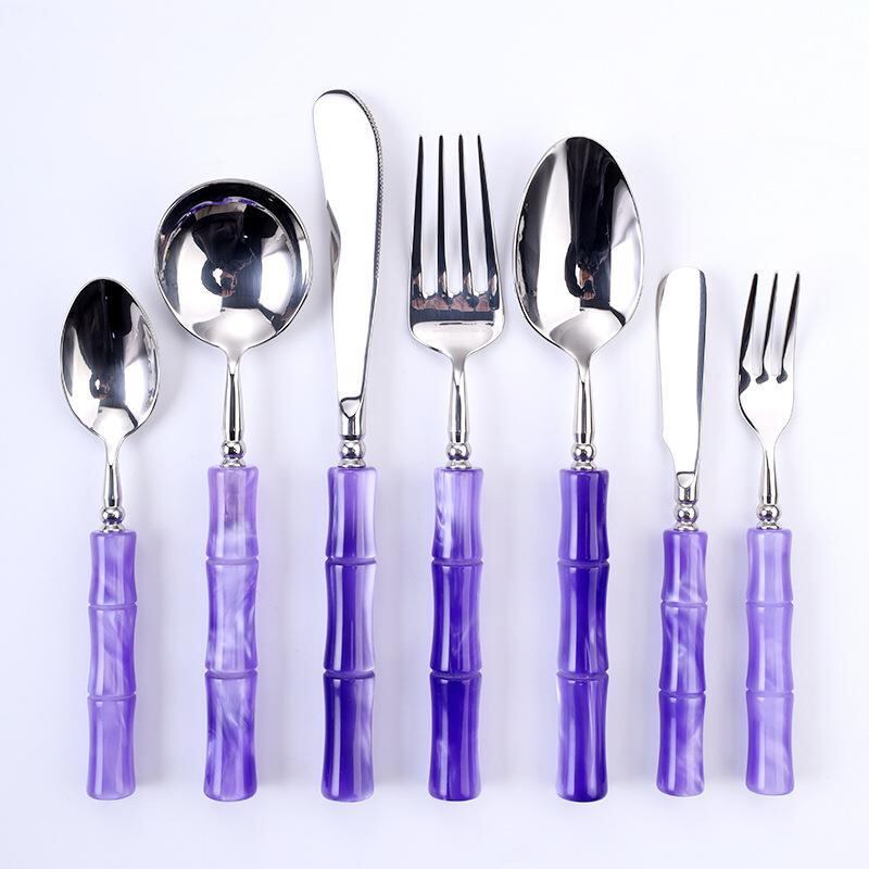 カトラリー 紫 304ステンレス アクリル 竹節 光沢 高級感 ホテルレストラン用 北欧風 ミラー仕上げ 7点セット ナイフ フォーク スプーン