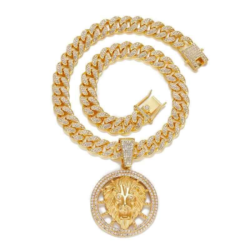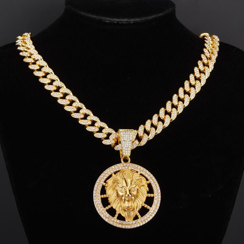 ネックレス 男女兼用 ヒップホップ ストリート キューバンチェーン ライオンモチーフ ペンダント ロングネックレス セット 合金 ラインストーン ゴールド シルバー ダンス衣装 カジュアル ファッション 存在感 重厚感 光沢 メッキ加工