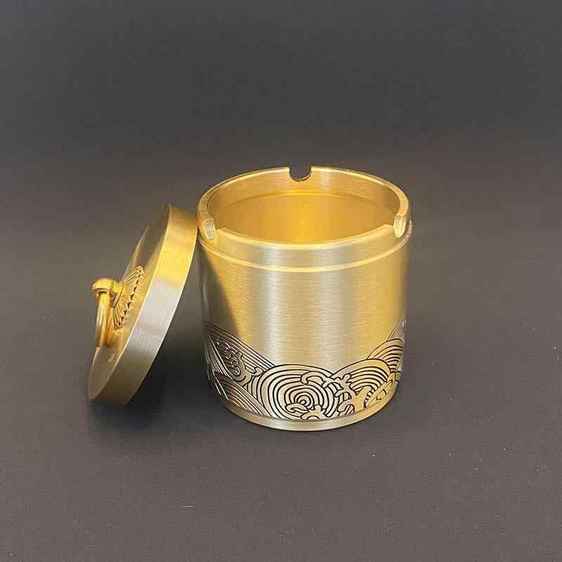 真鍮製小物入れ 車載 密閉式 灰皿 茶葉入れ 香粉ケース ポータブル 小型 軽量 家庭用 オフィス用 仏間用 旅行用 マルチ収納 和風 レトロ 高級感 吉祥柄デザイン