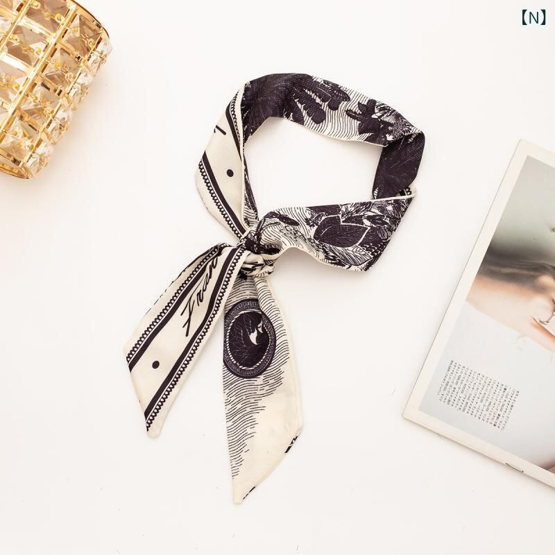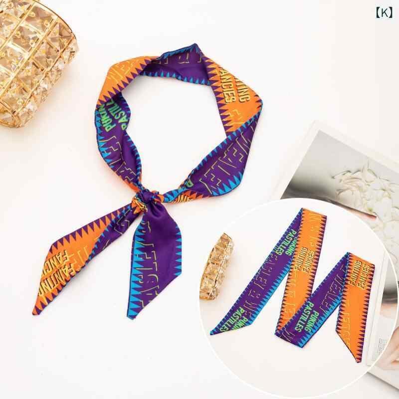 リボン スカーフ レディース 細身 ロング ヘアバンド ヘアアクセサリー 髪飾り バッグチャーム 首元 おしゃれ 上品 春夏 ポリエステル素材 多用途 万能アイテム