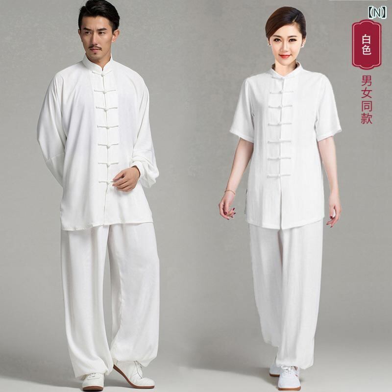 武術服 シニア 中高年 高齢者 太極服 太極拳ウェア 半袖 上下セット 春夏用 競技 演武 練習 朝練 薄手 軽量 綿 コットン グリーン