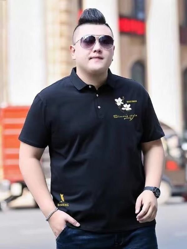 ポロシャツ メンズ 男性用 大きいサイズ 半袖 ゆったり ビッグシルエット 植物柄プリント 春夏 ビジネスカジュアル 普段使い ポリエステル ブラック