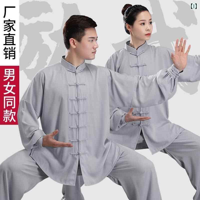 太極拳ウェア 男女兼用 春秋 綿混 ポリエステル ゆったり 武術服 練習着 稽古着 上下セット 中高齢者向け 演武服 発表会 八段錦