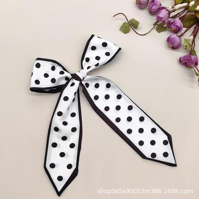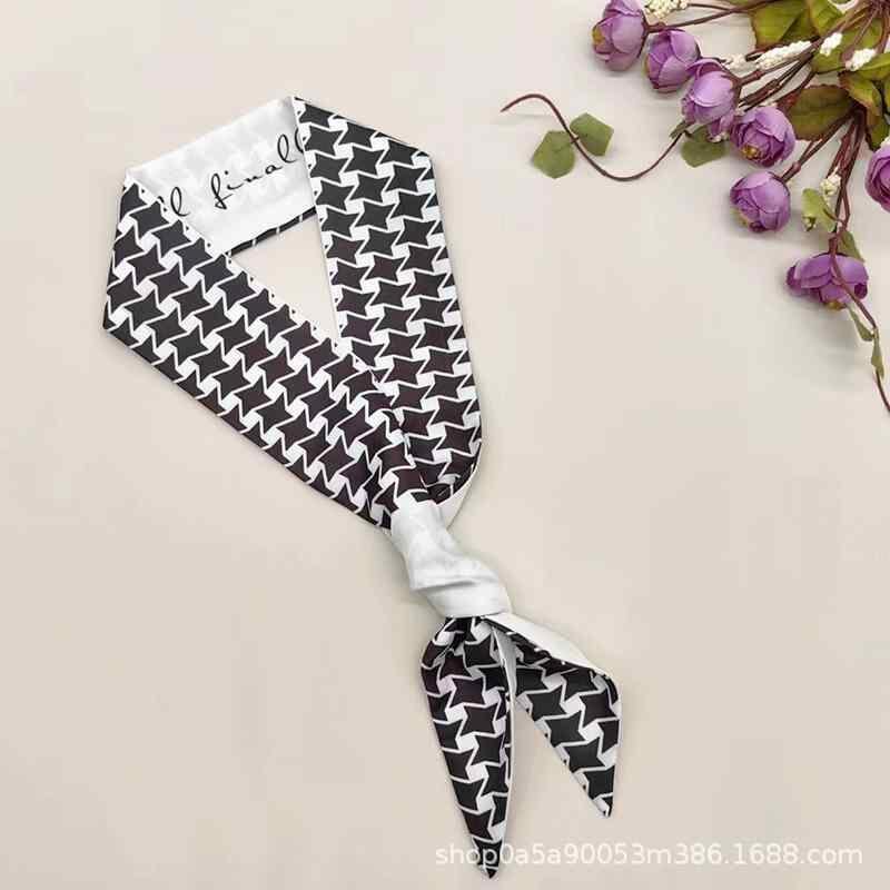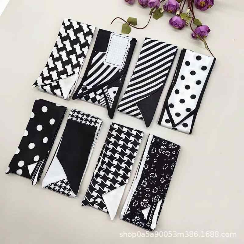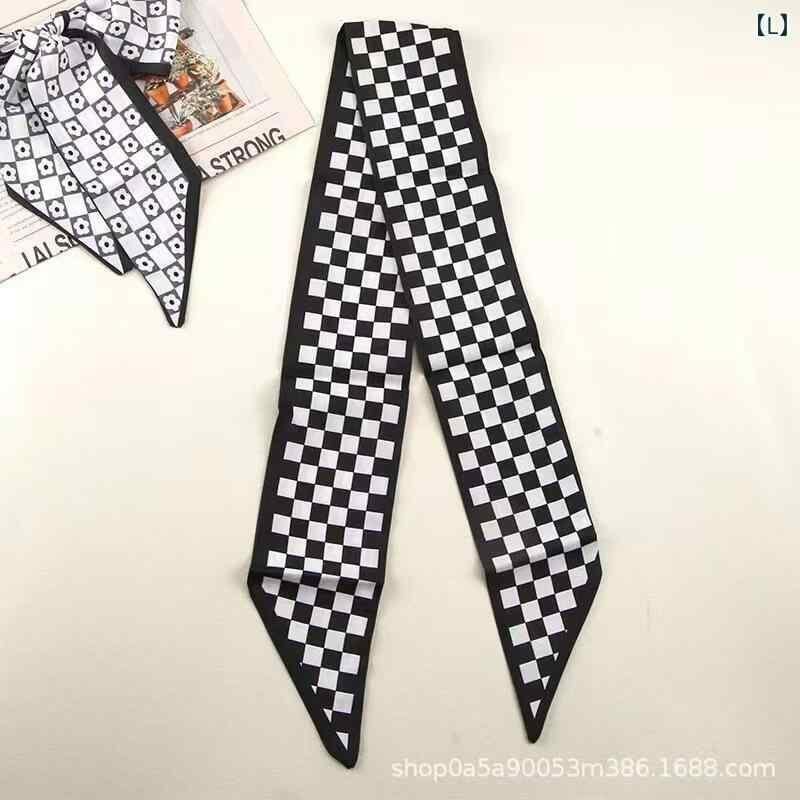 リボン スカーフ ブラック ホワイト 幾何学模様 プリント柄 ヘアタイ ヘアバンド バッグチャーム ベルト ポリエステル 柔らか 上品 シンプル ファッション小物 通勤 春夏