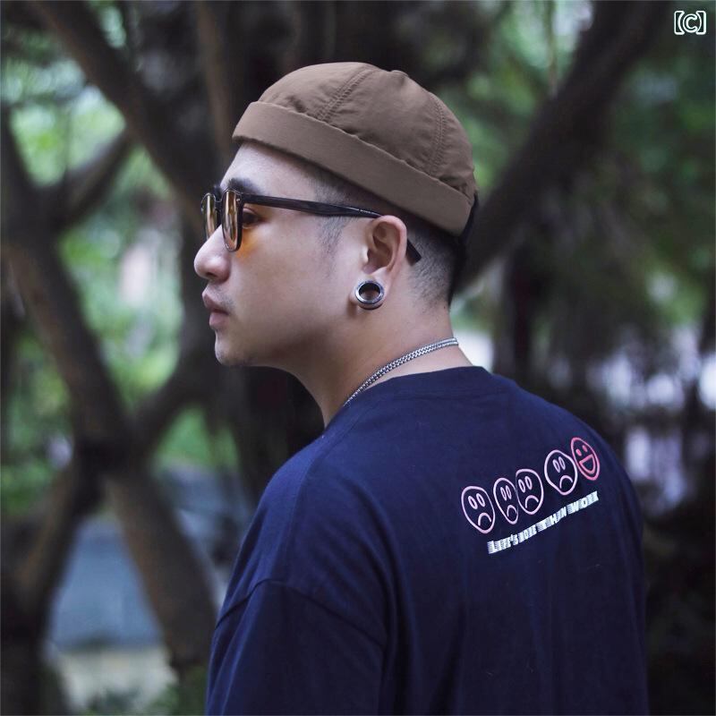 ドッカーキャップ ロールキャップ メンズ 薄手 速乾 無地 レトロ ストリート 通気性 個性的 つばなし 丸型 ポリエステル 春夏 ブラック グレー ブラウン カーキ 普段使い アウトドア スポーツ