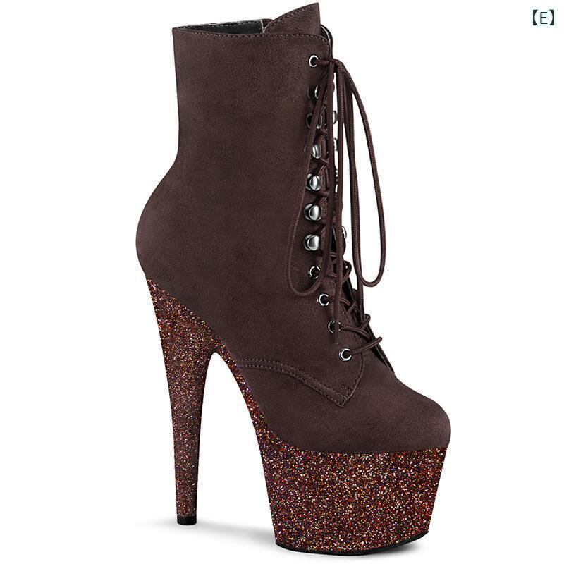 ブーツ レディース 17cm 超高 ピンヒール 極厚底 プラットフォーム グリッター ラメ 編み上げ ポールダンス ステージ ラウンドトゥ スエード調 欧米風