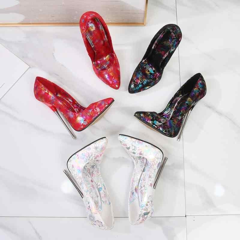 パンプス ハイヒール レディース 女性用 欧米スタイル ポインテッドトゥ スティレットヒール メタルヒール 超高ヒール PUレザー 花柄 切り替え ゴム底 ナイトクラブ パーティー ポールダンス ダンスシューズ ステージ 大きいサイズ ビッグサイズ