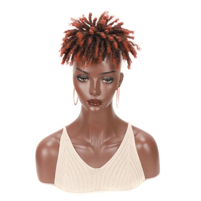 ウィッグ 女性用 ショート 巻き髪 ドレッドヘア エクステ ヘアピース 自然な髪色 レゲエ ファッション かつら コスプレ イメチェン 耐熱ファイバー 簡単装着 頭頂部用