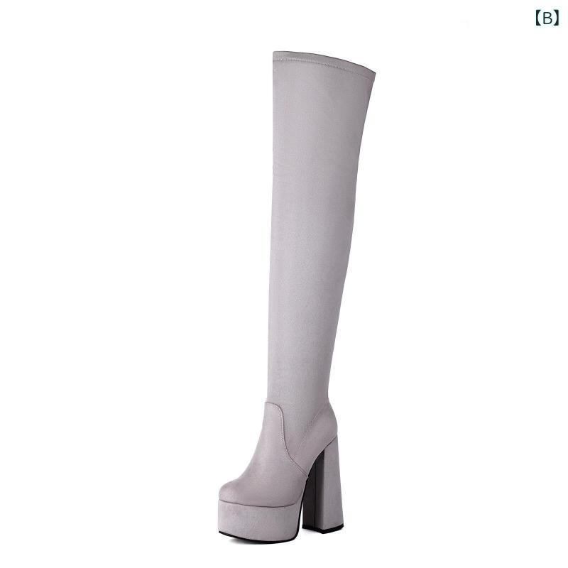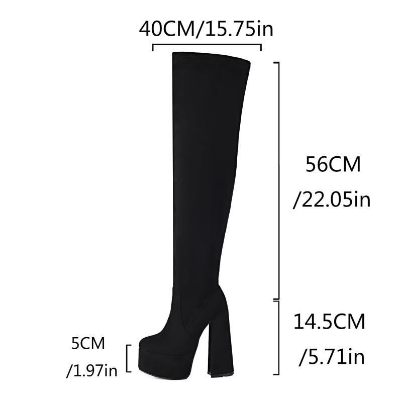 ニーハイブーツ レディース ストレッチ ソックスブーツ 超ハイヒール 太ヒール ストーム 厚底 ポールダンス 大きいサイズ ラウンドトゥ サイドジップ 秋冬