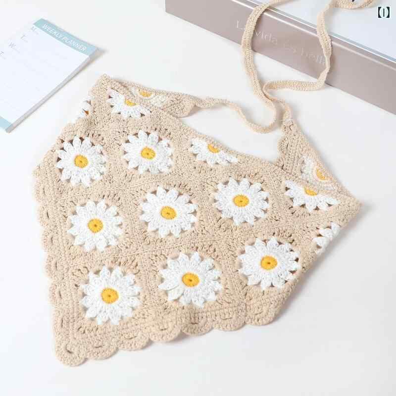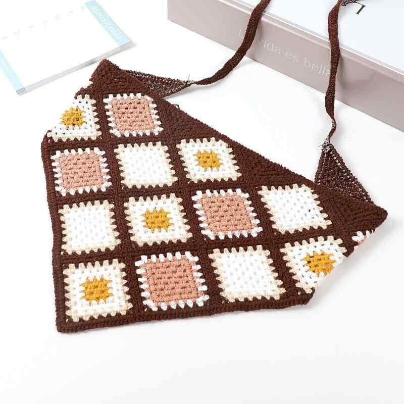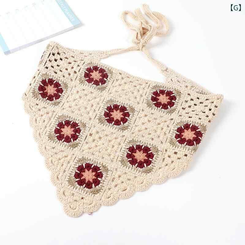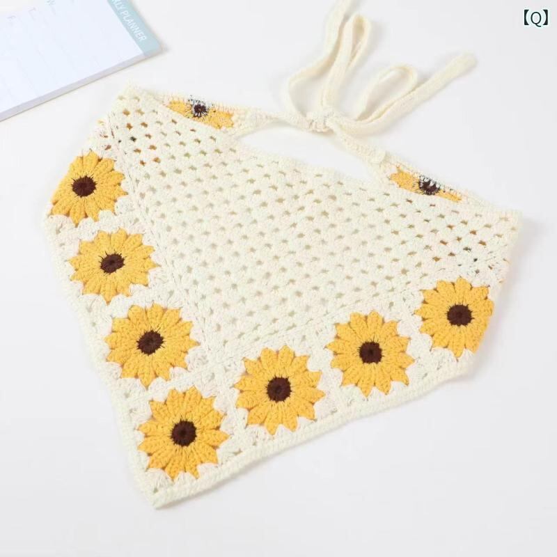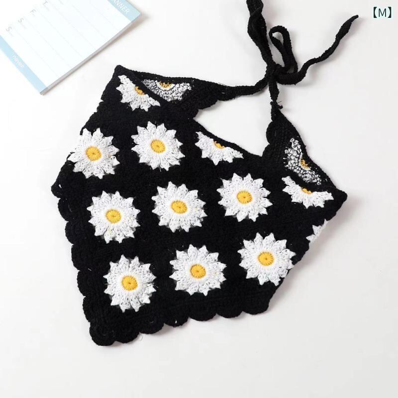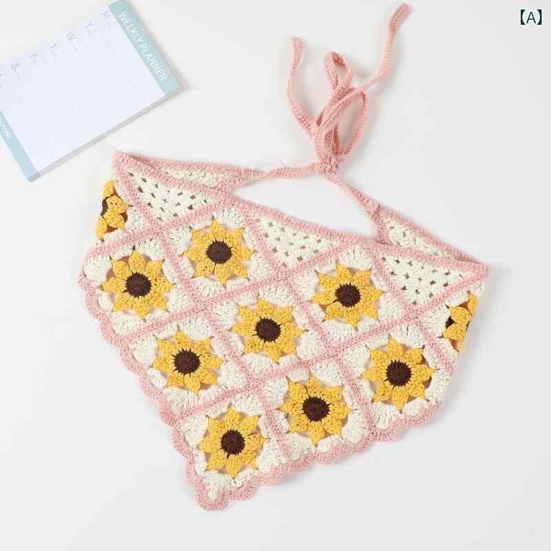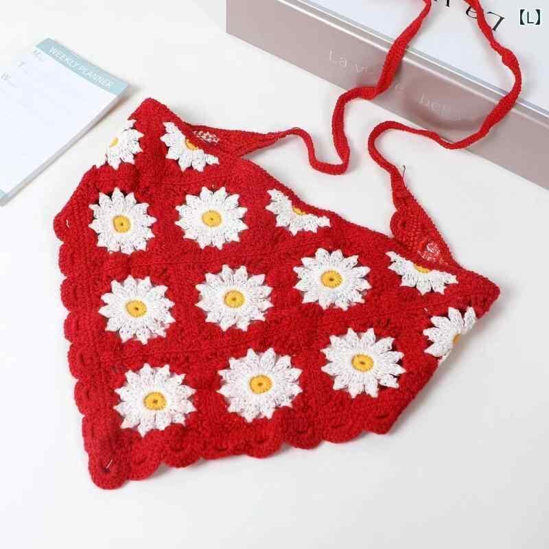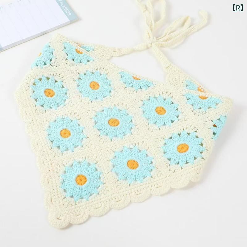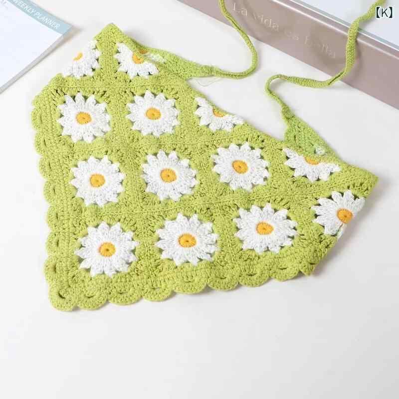 三角巾 レディース 手編みニット かぎ針編み ヘアバンド ヘッドスカーフ かわいい ガーリー スイート コットン オールシーズン ボヘミアン レトロ カントリースタイル デイジー 透かし編み レース 切り替え