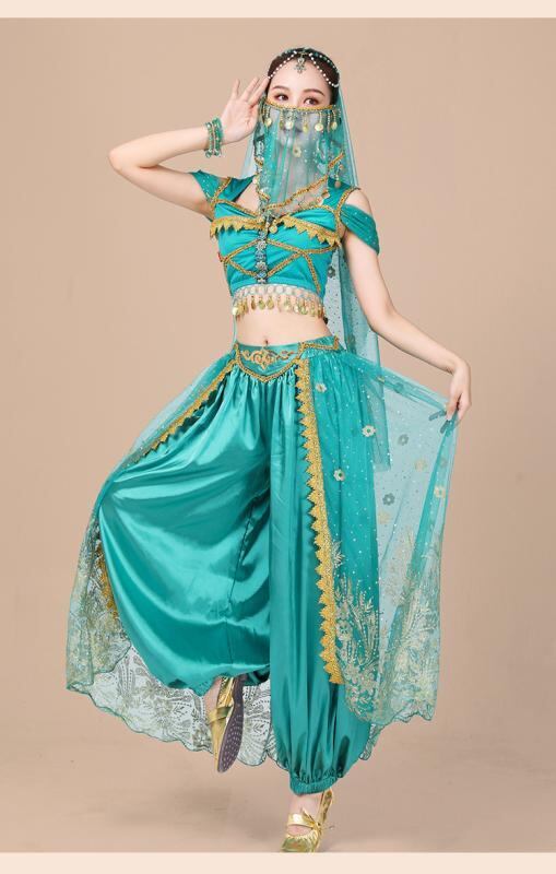 コスプレ衣装 レディース 大人用 ハロウィン 仮装 ジャスミン姫風 アラジン風 インド舞踊 ベリーダンス ステージ衣装 演出服 セクシー セットアップ