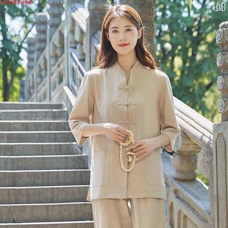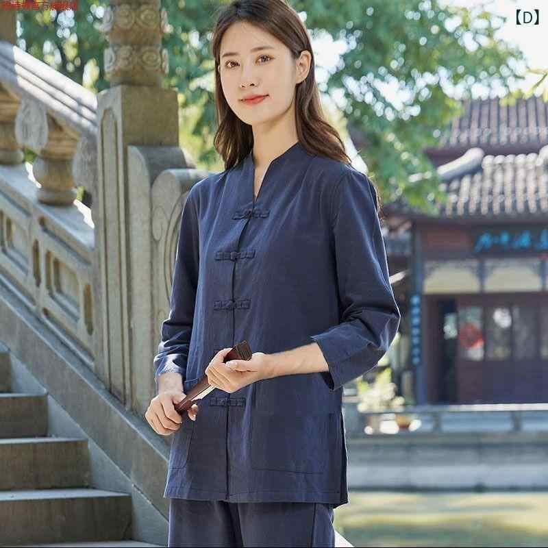 作務衣 レディース メンズ 居士服 禅修着 上下セット 綿麻 コットンリネン 中華風 民族風 座禅 瞑想 ヨガ リラックスウェア 春夏