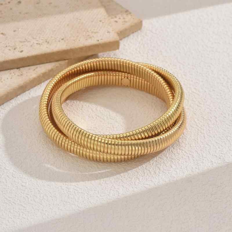 ブレスレット レディース 欧米風 パンクテイスト 個性的 大ぶり メタル 合金 三連 レイヤード 重ね付け風 チェーン クロスデザイン ゴールド シルバー 普段使い カジュアル