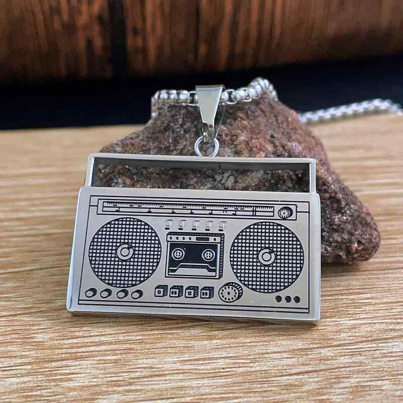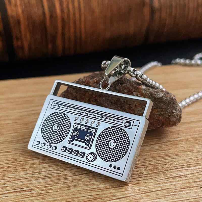 ネックレス ペンダント 男女兼用 チタン鋼 ラジオ レコーダーモチーフ 個性的 パンク レトロ ヴィンテージ スティールカラー 研磨加工 ジオメトリック