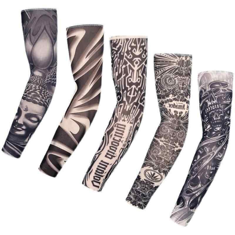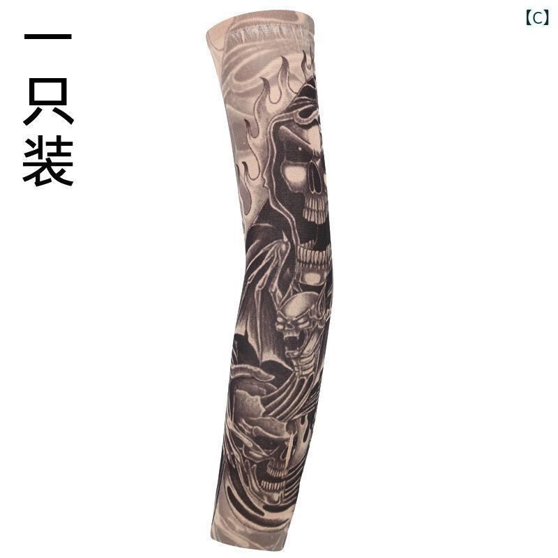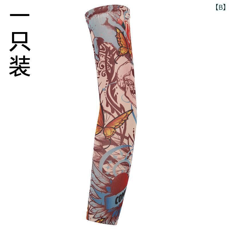 アームカバー 男女兼用 タトゥー風 花柄 ロング 接触冷感 UVカット 日焼け対策 夏用 サイクリング ドライブ スポーツ アウトドア ポリエステル製
