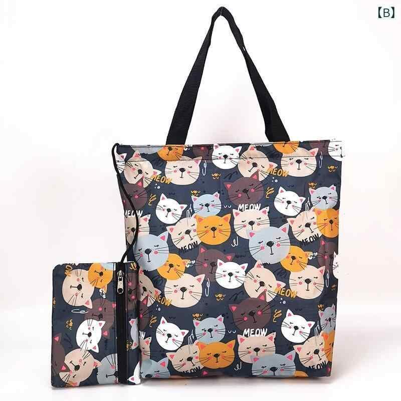 ・カテゴリ: 買い物袋・サイズ: 中・性別: ユニセックス・最大耐荷重: 約20kg・素材: ナイロン・スタイル: 韓国風・柄: カートゥーン・形状: 横型中サイズ・カラー展開: 湖ブルー、パープル、レッド、マルチカラー、オフホワイト
