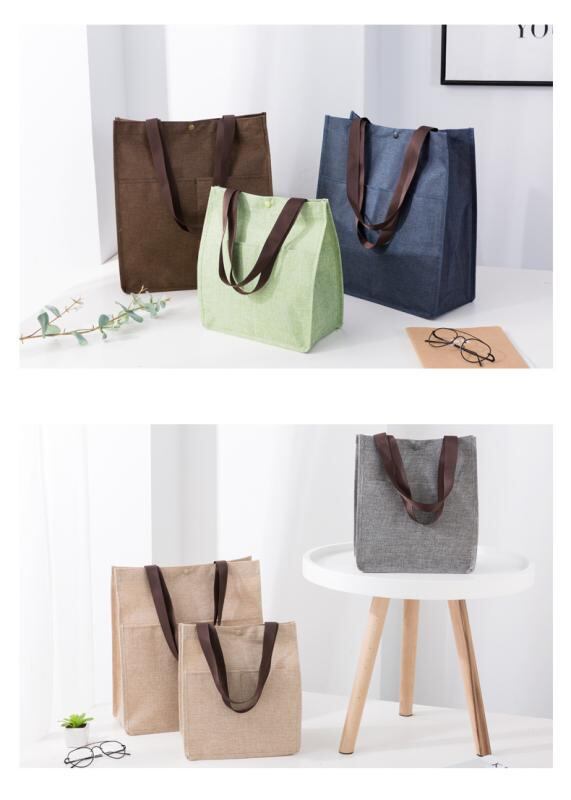 エコバッグ 綿麻 折りたたみ コンパクト ショッピングバッグ 無地 買い物袋 トートバッグ 学生 通学用 ランチバッグ 弁当入れ 食料品 日用品 普段使い サブバッグ 軽量 大容量