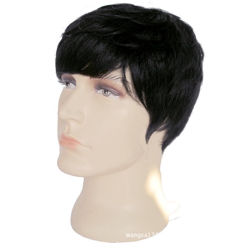 ウィッグ メンズ 男性用 人毛 リアルヘア ショート かつら 韓国風 韓流スタイル 自然な黒色 斜め前髪 自然な仕上がり 通気性抜群 普段使い 日常使い 薄毛隠し イメチェン ファッション小物