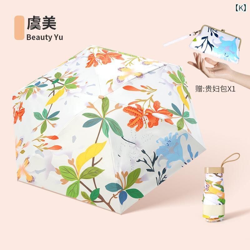 晴雨兼用傘 レディース 薄型 5段折りたたみ傘 高UVカット 遮光 軽量 コンパクト おしゃれ 携帯用 ポンジー生地