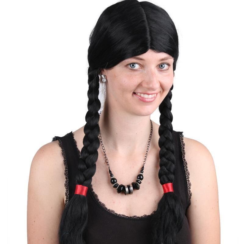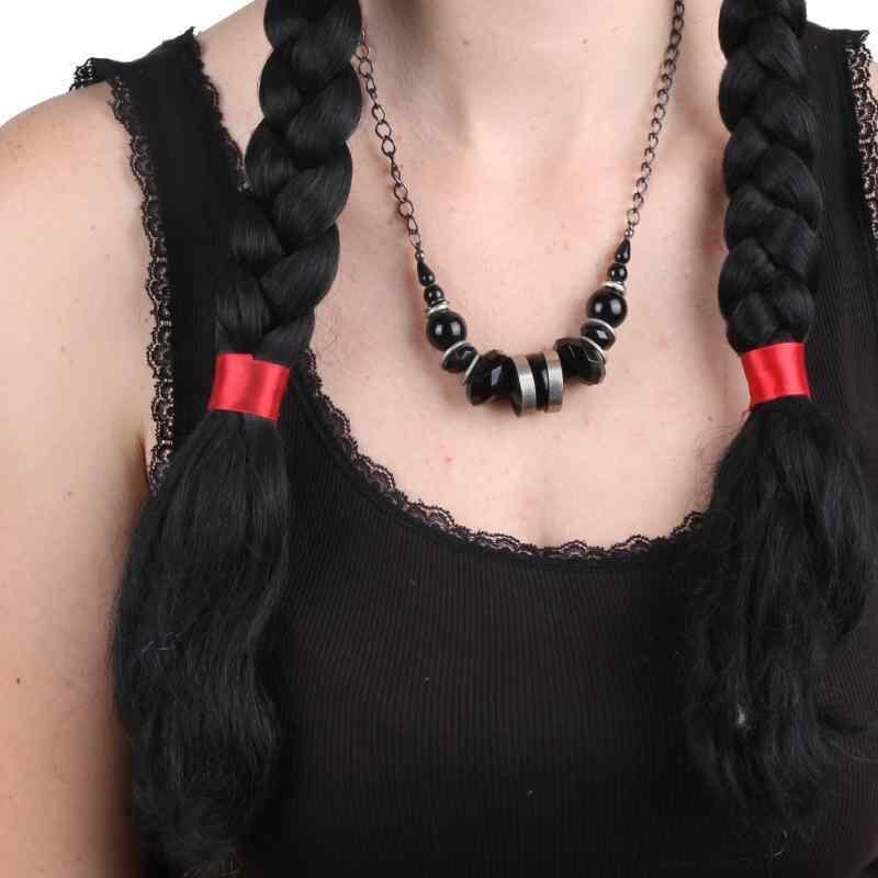 ウィッグ レディース 女性用 ツインテール 三つ編み ブラック 黒 ロング ヘアー ナチュラル 自然な風合い 精巧な作り マシンメイド 人工毛 ファイバー かわいい 普段使い コスプレ エキゾチック